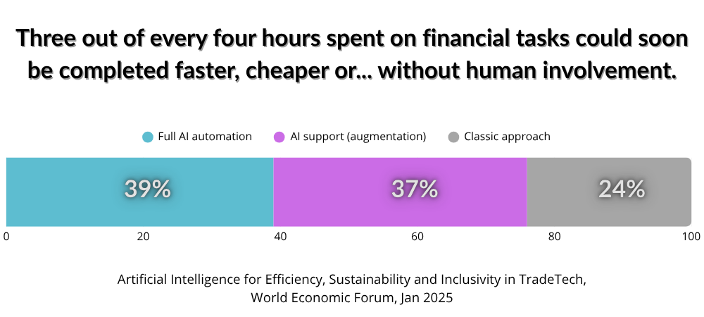 banking, insurance and investment industries, up to 39% of work can be fully automated thanks to AI.